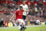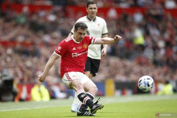 Legenda sepak bola Manchester United Gary Neville beraksi saat bertanding dengan Legenda Liverpool dalam laga Legends of the North , di Stadion Old Trafford, Manchester, Inggris, Sabtu (21/5/2022). ANTARA FOTO/Reuters-Ed Sykes/hp.