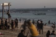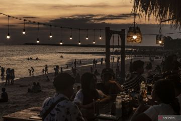 Wisatawan mengunjungi Pantai Kelan di Bali, Minggu (22/5/2022). Menteri Pariwisata dan Ekonomi Kreatif Sandiaga Uno berharap pemulihan pariwisata di Bali dapat membawa ke era baru pariwisata CHSE (Cleanliness, Health, Safety, dan Environment Sustainability) serta fokus terhadap alam dan budaya. ANTARA FOTO/Aprillio Akbar/wsj.