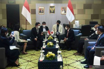 Kepala Badan Nasional Penanggulangan Bencana (BNPB) Letjen TNI Suharyanto (ketiga kanan) berbicara dengan State Minister for Cabinet Affairs in charge of Economic Security and Disaster Management Japan Keitaro Ohno (ketiga kiri) saat pertemuan bilateral Indonesia dengan Jepang dalam rangkaian Global Platform for Disaster Risk Reduction (GPDRR) 2022 di Nusa Dua, Badung, Bali, Selasa (24/5/2022). Pertemuan bilateral tersebut membahas kerja sama antara Indonesia dan Jepang dalam hal penanganan bencana. ANTARA FOTO/Nyoman Hendra Wibowo/hp.