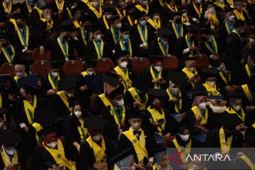 Wisudawan Universitas Gadjah Mada (UGM) mengikuti Wisuda Program Sarjana dan Diploma TA 2021/2022 yang digelar secara luring (offline) di GSP UGM, Sleman, D.I Yogyakarta, Rabu (25/5/2022). Wisuda Program Sarjana dan Diploma TA 2021/2022 UGM merupakan yang pertama kali digelar secara luring sejak pandemi COVID-19 dengan jumlah wisudawan dan wisudawati sebanyak 1.023 orang. ANTARA FOTO/Andreas Fitri Atmoko/aww.