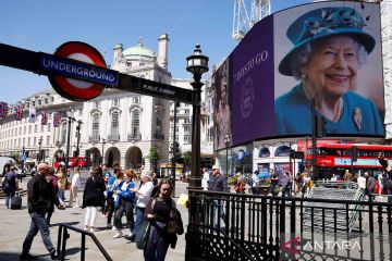 Sejumlah orang berjalan di dekat layar besar yang menampilkan hitung mundur tujuh hari menuju Perayaan Jubilee Platinum Ratu Elizabeth di Piccadilly Circus di London, Inggris, Jumat (27/5/2022). ANTARA FOTO/REUTERS/John Sibley/wsj.
