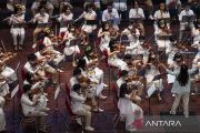 Para musisi TRUST Orchestra memainkan alat musiknya dalam konser bertajuk Hari Ini Indah di Taman Ismail Marzuki, Jakarta, Sabtu (4/6/2022). Trinity Optima Production dan TRUST Orchestra menggelar konser musik orkestra dengan 100 persen musisi muda tanah air yang bertujuan untuk memberikan kesempatan pada bibit-bibit orkestra muda nasional yang selama ini masih belum banyak tereksplorasi. ANTARA FOTO/Sigid Kurniawan/aww.