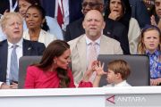 Kate Middleton berbincang dengan putranya Pangeran Louis menghadiri Platinum Jubilee Pageant, menandai berakhirnya perayaan Platinum Jubilee Ratu Elizabeth, di London, Inggris, (5/6/2022). ANTARA FOTO/Chris Jackson/Pool via REUTERS/aww.