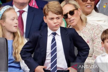 Reaksi Pangeran George, putra pasangan Pangeran William dan Kate Middleton, saat menghadiri Kontes Platinum Jubilee, menandai berakhirnya perayaan Platinum Jubilee Ratu Elizabeth Inggris, di London, Inggris, (5/6/2022). ANTARA FOTO/Chris Jackson/Pool via REUTERS/aww.