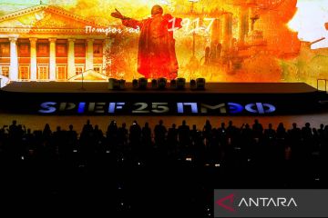 Para peserta menghadiri upacara pembukaan St. Petersburg International Economic Forum (SPIEF) di Saint Petersburg, Rusia (16/6/2022). ANTARA FOTO/REUTERS/Maxim Shemetov/aww.