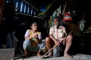 Dua orang warga Suku Polahi Tuuli Palowa yang biasa disapa Bakiki (kanan) bersama istrinya, Nakiki Palowa (kiri) duduk di rumahnya di Dusun Tumba, Kabupaten Gorontalo, Gorontalo, Jumat (17/6/2022). Polahi (pelarian) merupakan sebutan bagi warga yang konon melarikan diri saat jaman penjajahan Belanda ke daerah pegunungan dan hidup di tengah hutan. ANTARA FOTO/Adiwinata Solihin/pras.