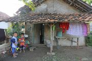 Dua orang anak bermain di depan rumahnya di kampung nelayan Pabean udik, Indramayu, Jawa Barat, Minggu (19/6/2022). Pemerintah menargetkan penurunan angka kemiskinan ekstrem hingga nol persen di 212 kabupaten/kota pada tahun 2024 seiring dengan dikeluarkannya Instruksi Presiden (Inpres) Nomor 4 tahun 2022 tentang Percepatan Penghapusan Kemiskinan Ekstrem. ANTARA FOTO/Dedhez Anggara/wsj.