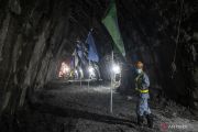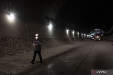 Pekerja berjalan di area proyek tunnel dua Kereta Cepat Jakarta-Bandung (KCJB) di Jatiluhur, Kabupaten Purwakarta, Jawa Barat, Selasa (21/6/2022). PT Kereta Cepat Indonesia China (KCIC) menyatakan proyek tunnel dua Kereta Cepat Jakarta-Bandung itu telah berhasil ditembus yang menandakan 13 terowongan KCJB kini telah tersambung. ANTARA FOTO/Aprillio Akbar/foc.