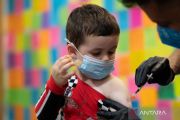 Miller Mensch, seorang anak berumur empat tahun menerima suntikan vaksin COVID-19 di Skippack Pharmacy, Schwenksville, Pennsylvania, Amerika Serikat, Selasa (21/6/2022). Amerika Serikat telah memulai program vaksinasi COVID-19 kepada anak-anak usia enam bulan ke atas dengan mengeluarkan izin penggunaan vaksin dua dosis Moderna untuk anak-anak berusia enam bulan hingga lima tahun dan tiga suntikan Pfizer-BioNTech untuk anak-anak berusia enam bulan hingga empat tahun. ANTARA FOTO/REUTERS/Hannah Beier/wsj.