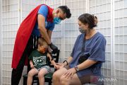 Seorang anak berumur tiga tahun menerima suntikan vaksin COVID-19 Moderna di Skippack Pharmacy, Schwenksville, Pennsylvania, Amerika Serikat, Senin (20/6/2022). Amerika Serikat telah memulai program vaksinasi COVID-19 kepada anak-anak usia enam bulan ke atas dengan mengeluarkan izin penggunaan vaksin dua dosis Moderna untuk anak-anak berusia enam bulan hingga lima tahun dan tiga suntikan Pfizer-BioNTech untuk anak-anak berusia enam bulan hingga empat tahun. ANTARA FOTO/REUTERS/Hannah Beier/wsj.