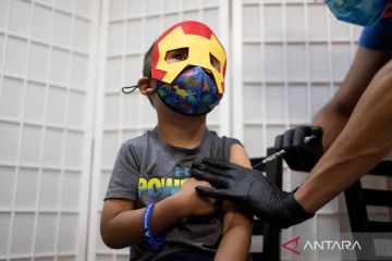 Mathis Crumb, seorang anak berumur empat tahun menerima suntikan vaksin COVID-19 di Skippack Pharmacy, Schwenksville, Pennsylvania, Amerika Serikat, Selasa (21/6/2022). Amerika Serikat telah memulai program vaksinasi COVID-19 kepada anak-anak usia enam bulan ke atas dengan mengeluarkan izin penggunaan vaksin dua dosis Moderna untuk anak-anak berusia enam bulan hingga lima tahun dan tiga suntikan Pfizer-BioNTech untuk anak-anak berusia enam bulan hingga empat tahun. ANTARA FOTO/REUTERS/Hannah Beier/wsj.