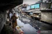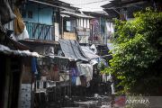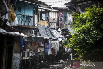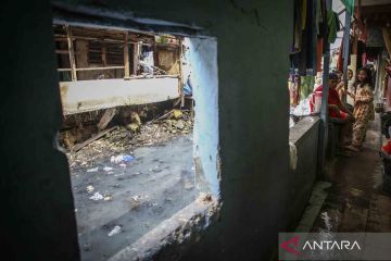 Dua warga melintas di kawasan rumah padat penduduk Kebon Melati, Jakarta, Kamis (23/6/2022). Sekretaris Jenderal Kementerian Dalam Negeri Suhajar Diantoro mengungkapkan, sebanyak 135.345 warga Ibu Kota tergolong penduduk dengan kemiskinan ekstrem sehingga harus mendapat perhatian serius dalam memaknai HUT ke-495 DKI Jakarta. ANTARA FOTO/Rivan Awal Lingga/wsj.