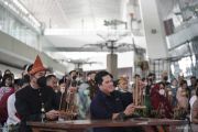 Menteri BUMN Erick Thohir (kanan) menyaksikan penari tampil pada pagelaran budaya "Langgam Pancarona, Dahayu Nusantara" di Bandara Internasional Soekarno-Hatta, Tangerang, Banten, Minggu (26/6/2022). Menteri BUMN mengatakan bandara internasional sebagai gerbang masuk ke Indonesia harus menjadi panggung tetap bagi para seniman dan budayawan lokal untuk mementaskan karya seni dan budaya nusantara. ANTARA FOTO/Dhemas Reviyanto/hp.