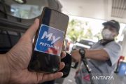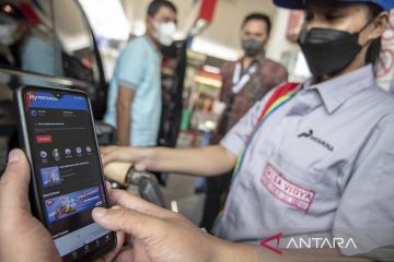 Warga menunjukkan aplikasi MyPertamina saat mengisi bahan bakar pertalite di SPBU Pertamina Abdul Muis, Jakarta, Rabu (29/6/2022). PT Pertamina (Persero) melalui anak usahanya, PT Pertamina Patra Niaga, menguji coba pembelian bahan bakar minyak (BBM) subsidi Pertalite dan Solar secara terbatas bagi pengguna yang sudah terdaftar pada sistem MyPertamina mulai 1 Juli mendatang. ANTARA FOTO/Muhammad Adimaja/rwa.