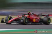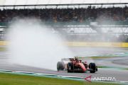 Pebalap Ferrari Carlos Sainz Jr. melaju pada kualifikasi F1 GP Inggris di Sirkuit Silverstone, Inggris, Sabtu (2/7/2022). Carlos Sainz merebut pole position di Formula 1 GP Inggris menggungguli Max Verstappen dan Charles Leclerc. ANTARA FOTO/REUTERS/Peter Cziborra/rwa.