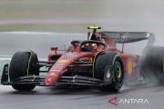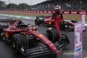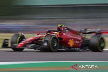 Pebalap Ferrari Carlos Sainz Jr. melaju pada kualifikasi F1 GP Inggris di Sirkuit Silverstone, Inggris, Sabtu (2/7/2022). Carlos Sainz merebut pole position di Formula 1 GP Inggris menggungguli Max Verstappen dan Charles Leclerc. ANTARA FOTO/REUTERS/Andrew Boyers/rwa.