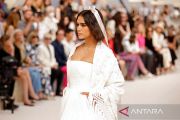 Seorang model mengenakan busana kreasi desainer Virginie Viard sebagai bagian dari peragaan koleksi Haute Couture Fall/Winter 2022-2023 untuk rumah mode Chanel di Paris, Prancis, (5/7/2022). ANTARA FOTO/REUTERS/Johanna Geron/aww.