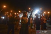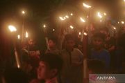 Sejumlah anak-anak mengikuti pawai obor keliling di Perumahan Abi Singgalang, Kabupaten Padangpariaman, Sumatera Barat, Jumat (8/7/2022). Pawai obor pada malam takbiran menyambut hari raya Idul Adha 1443 H digelar oleh warga setempat yang sebagian merayakannya pada Sabtu (9/7/2022). ANTARA FOTO/Iggoy el Fitra/wsj.