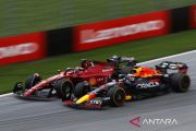 Pembalap Ferrari Charles Leclerc dan pembalap Red Bull Max Verstappen saling memacu kecepatan mobilnya pada balapan F1 GP Austria di Red Bull Ring, Spielberg, Austria , Minggu (10/7/2022). Charles Leclerc menjadi pembalap Ferrari pertama sejak Schumacher (2003) yang berhasil menjuarai GP Austria. ANTARA FOTO/REUTERS/Florion Goga/aww.