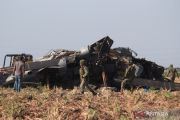 Tentara Meksiko berjaga dekat bangkai helikopter militer Black Hawk yang mengalami kecelakaan di Los Mochis, Sinaloa state, Meksiko, Jumat (15/7/2022). Pihak berwenang menyatakan 14 orang tewas dalam kecelakaan itu. ANTARA FOTO/REUTERS/Stringer/foc.