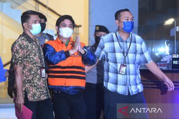 Tersangka kasus dugaan suap izin usaha pertambangan di Tanah Bumbu Mardani H Maming mengenakan rompi tahanan usai menjalani pemeriksaan di gedung KPK, Jakarta, Kamis (28/7/2022). KPK resmi menahan mantan Bupati Tanah Bumbu tersebut setelah sebelumnya sempat menjadi DPO KPK. ANTARA FOTO/Akbar Nugroho Gumay/rwa.