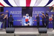 Maskot Piala Dunia Bola Basket FIBA 2023 muncul dari balik panggung saat diluncurkan di gedung Sarinah, Jakarta, Sabtu (30/7/2022). Maskot bernama "JIP" tersebut merupakan penggabungan huruf depan ketiga negara tuan rumah Piala Dunia Bola Basket FIBA 2023 yakni Jepang, Indonesia, dan Philippina. ANTARA FOTO/Dhemas Reviyanto/hp.