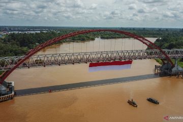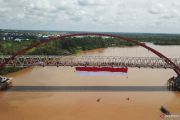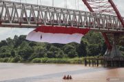 Relawan Emergency Response Palangkaraya (ERP) membentangkan bendera merah putih di Jembatan Kahayan, Palangka Raya, Kalimantan Tengah, Sabtu (6/8/2022). Aksi pembentangan bendera merah putih sepanjang 40 x 8 meter tersebut diikuti oleh TNI, Polri, Basarnas, BPBD, dan relawan ERP yang bertujuan untuk menumbuhkan rasa jiwa nasionalisme kepada generasi muda serta menyemarakkan HUT ke-77 Kemerdekaan Republik Indonesia. ANTARA FOTO/Makna Zaezar/hp.