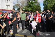 Presiden Joko Widodo (ketiga kanan) bersama Ibu Iriana Joko Widodo (tengah) dan cucunya, Jan Ethes Srinarendra (tengah-depan) berjalan santai di sepanjang Jalan Slamet Riyadi pada hari bebas kendaraan bermotor atau "car free day" (CFD) Kota Surakarta, Jawa Tengah, Minggu (7/8/2022). ANTARA FOTO/HO/Biro Pers Setpres/Lukas/aww.