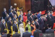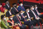 Sejumlah menteri Kabinet Indonesia Maju menghadiri Sidang Tahunan MPR dan Sidang Bersama DPR - DPD Tahun 2022 di Gedung Nusantara, Kompleks Parlemen, Senayan, Jakarta, Selasa (16/8/2022). ANTARA FOTO/Galih Pradipta/wsj.