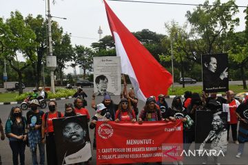 Sejumlah aktivis Forum Seniman Peduli Taman Ismail Marzuki (TIM) melakukan aksi menolak pengelolaan TIM oleh Jakpro di Jalan Medan Merdeka Utara menuju Kantor Mahkamah Agung (MA), Jakarta, Senin (22/8/2022). Aksi tersebut juga diikuti dengan pengajuan gugatan uji materiil kepada MA terhadap Peraturan Gubernur DKI Nomor 63 Tahun 2019 juncto Nomor 16 Tahun 2022 yang memberikan kewenangan kepada PT Jakarta Propertindo (Jakpro) untuk mengelola Pusat Kesenian Jakarta TIM. ANTARA FOTO/Aditya Pradana Putra/rwa.