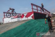 Pembalap sepeda gunung (MTB) Indonesia mengikuti latihan di sirkuit trek arena UCI MTB di Palangka Raya, Kalimantan Tengah, Selasa (23/8/2022). Sebanyak 18 atlet balap sepeda gunung (MTB) timnas Indonesia yang terdiri dari sembilan putra dan sembilan putri akan mengikuti ajang kejuaraan balap sepeda internasional UCI MTB Eliminator World Cup 2022 pada 28 Agustus. ANTARA FOTO/Makna Zaezar/aww.