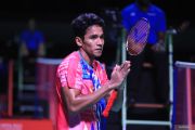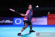 Ekspresi pebulu tangkis tunggal putra Indonesia Chico A.D. Wardoyo usai menundukkan pebulu tangkis tunggal putra Jepang Kento Momota pada babak 32 besar Japan Open 2022 di Maruzen Intec Arena, Osaka, Jepang, Rabu (31/8/2022). Chico lolos ke babak kedua setelah menundukkan Momota 21-15 dan 22-20. ANTARA FOTO/Humas PBSI/rwa.
