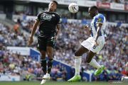 Pesepak bola Brighton & Hove Albion Enock Mwepu (kanan) berebut bola dengan pesepak bola Leicester City' James Justin dalam laga pekan keenam Liga Inggris, di Stadion The American Express Community, Brighton, Inggris, Minggu (4/9/2022). Babak pertama usai pertandingan berakhir imbang 2-2. ANTARA FOTO?Reuters-John Sibley /hp.