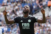 Pesepak bola Leicester City Kelechi Iheanacho melakukan selebrasi setelah mencetak go ke gawang Brighton & Hove Albion dalam laga pekan keenam Liga Inggris, di Stadion The American Express Community, Brighton, Inggris, Minggu (4/9/2022). Babak pertama usai pertandingan berakhir imbang 2-2. ANTARA FOTO?Reuters-Peter Nicholls/hp.