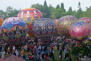 Warga menyaksikan penerbangan balon tradisional saat digelar Java Balloon Attraction di lapangan Taman Rekreasi Kalianget, Wonosobo, Jawa Tengah, Minggu (4/9/2022). Atraksi penerbangang balon tradisional diikuti oleh 25 balon unik dan tiga balon khusus dengan membentuk formasi Gunung Sindoro, Telaga Menjer, Waduk Wadaslintang dan Gunung Prau yang merupakan ikon wisata alam yang ada di kabupaten Wonosobo. ANTARA FOTO/Anis Efizudin/hp.