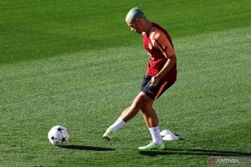 Pesepak bola Atletico Madrid Antoine Griezmann melakukan latihan jelang laga Group B Liga Champions melawan Porto, di pusat pelatihan Atletico Madrid, Ciudad Deportiva Wanda Atletico de Madrid, Madrid, Spanyol, Selasa (6/9/2022). ANTARA FOTO?Reuters-Violeta Santos Moura/hp.
