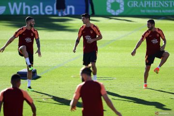 Pesepak bola Atletico Madrid's Matheus Cunha, Alvaro Morata dan Koke melakukan latihan jelang laga Group B Liga Champions melawan Porto, di pusat pelatihan Atletico Madrid, Ciudad Deportiva Wanda Atletico de Madrid, Madrid, Spanyol, Selasa (6/9/2022). ANTARA FOTO?Reuters-Violeta Santos Moura/hp.