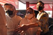 Mantan Gubernur Banten Ratu Atut Chosiyah (tengah) didampingi puteranya yang juga mantan Wagub Andika Hazrumi (kanan) dan puterinya yang saat ini menjadi anggota DPD RI Andiara Aprilia Hikmat (kiri), turun dari mobil untuk memenuhi wajib lapor di Kantor Badan Pemasyarakatan (Bapas) Serang, Banten, Senin (6/9/2022). Setelah menjalani hukuman tujuh tahun penjara dalam kasus suap terhadap Hakim MK, Ratu Atut Chosiyah dinyatakan bebas bersyarat dan wajib lapor hingga 8 Juli 2026 dan bisa dicabut kebebasannya bila Atut kembali melakukan tindak pidana, pelanggaran umum maupun khusus. ANTARA FOTO/Asep Fathulrahman/hp.