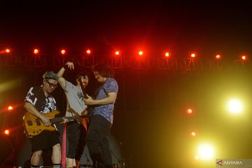 Grup band Gigi menghibur penggemarnya saat konser pada acara Makassar International Eight Festival and Forum (F8) di Anjungan Pantai Losari, Makassar, Sulawesi Selatan, Sabtu (10/9/2022) malam. Penampilan grup band yang beranggotakan Armand Maulana (Vokal), Dewa Budjana (Gitar), Thomas Ramdhan (Bass) dan Gusti Hendy (Drum) membawakan sejumlah lagu hitsnya diantaranya Nakal, Perdamaian, 11 Januari, dan Jomblo.. ANTARA FOTO/Abriawan Abhe/hp.