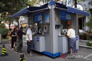 Seorang pekerja duduk di bilik pengujian penyakit virus corona (COVID-19) di Beijing, China, Selasa (13/9/2022). ANTARA FOTO/REUTERS/Thomas Peter/rwa.