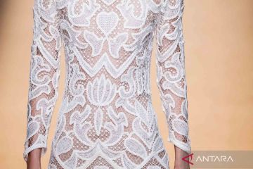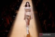 Seorang model memperagakan busana rancangan Alvaro Calafat di Mercedes Benz Fashiow Week, Madrid, Spanyol, Jumat (16/9/2022). ANTARA FOTO/REUTERS/Susana Vera/wsj.