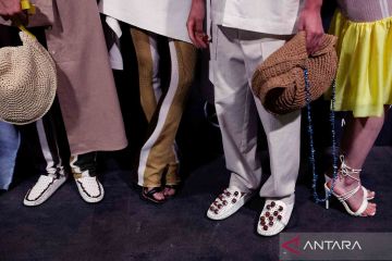 Sejumlah model menunggu giliran berjalan di atas catwalk untuk memperagakan busana rancangan Duarte di Mercedes Benz Fashiow Week, Madrid, Spanyol, Jumat (16/9/2022). ANTARA FOTO/REUTERS/Susana Vera/wsj.