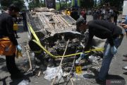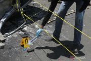 Anggota tim identifikasi gabungan dari Polres Malang dan Polda Jatim melakukan Olah Tempat Kejadian Perkara (TKP) kerusuhan di depan Stadion Kanjuruhan, Malang, Jawa Timur, Minggu (2/10/2022). ANTARA FOTO/Ari Bowo Sucipto/foc.