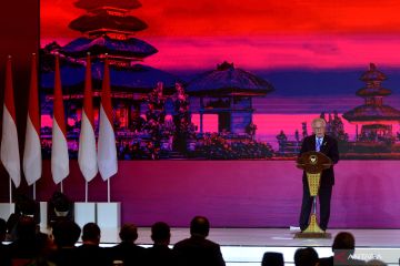 Special Representative of the Venice Commission Gianni Buquicchio menyampaikan sambutan saat Pembukaan Kongres ke-5 the World Conference on Constitustional Justice (WCCJ) di Nusa Dua, Badung, Bali, Rabu (5/10/2022). Kongres kelima peradilan konstitusi sedunia yang mengambil tema "Constitutional Justice and Peace" itu menjadi forum diskusi dan berbagi pengalaman serta praktik terbaik terkait peradilan konstitusi antar anggota WCCJ. ANTARA FOTO/Fikri Yusuf/hp.