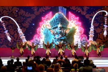 Sejumlah penari tampil saat Pembukaan Kongres ke-5 the World Conference on Constitustional Justice (WCCJ) di Nusa Dua, Badung, Bali, Rabu (5/10/2022). Kongres kelima peradilan konstitusi sedunia yang mengambil tema "Constitutional Justice and Peace" itu menjadi forum diskusi dan berbagi pengalaman serta praktik terbaik terkait peradilan konstitusi antar anggota WCCJ. ANTARA FOTO/Fikri Yusuf/hp.