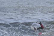 Peselancar klub Legian Boardriders Made Balon bertanding dalam babak final divisi Junior Boys Grand Final Nasional Liga Surfing Indonesia (LSI) 2022 di Pantai Pererenan, Badung, Bali, Minggu (9/10/2022). Made Balon berhasil menjuarai divisi Junior Boys Liga Surfing Indonesia 2022 diikuti peselancar klub Bingin Boardriders Teddy Bille dan peselancar Philip Duke dari Legian Boardriders di posisi ketiga. ANTARA FOTO/Fikri Yusuf/wsj.