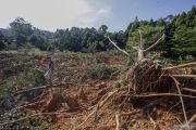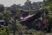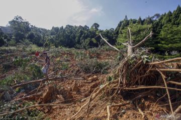 Warga melihat lokasi longsor di Desa Gunung Geulis, Sukaraja, Kabupaten Bogor, Jawa Barat, Jumat (14/10/2022). Hujan deras yang mengguyur wilayah Desa Gunung Geulis pada Rabu (12/10/2022) malam menyebabkan tebing setinggi 20 meter ambruk dan menimpa enam bangunan vila di bawahnya, jalan desa terputus dan 50 orang warga sekitar diungsikan untuk mengantisapasi adanya longsor susulan. ANTARA FOTO/Yulius Satria Wijaya/foc.