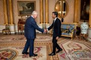 Raja Charles III menyambut Rishi Sunak selama audiensi di Istana Buckingham, London, di mana ia mengundang pemimpin Partai Konservatif yang baru terpilih untuk menjadi Perdana Menteri dan membentuk pemerintahan baru, (25/10/2022). ANTARA FOTO/Aaron Chown/Pool via REUTERS/aww.