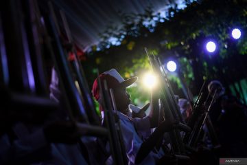 Sejumlah siswa bermain angklung saat mengunjungi Museum Sumpah Pemuda di Jakarta, Jumat (28/10/2022). Museum tersebut mengadakan sejumlah kegiatan untuk memperingati Hari Sumpah Pemuda seperti upacara peringatan, lokakarya belajar bermain angklung, membatik serta lintas sejarah Sumpah Pemuda untuk membangun karakter generasi muda. ANTARA FOTO/Wahyu Putro A/hp.