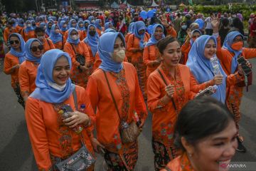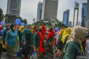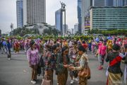 Sejumlah perempuan mengikuti parade kebaya dalam kampanye Gerakan Kebaya Goes to UNESCO saat hari bebas berkendaraan bermotor atau Car Free Day, di kawasan Bundaran Hotel Indonesia, Jakarta, Minggu (6/11/2022). Kegiatan tersebut digelar untuk mendukung kebaya agar bisa diajukan sebagai Warisan Budaya Tak Benda (Intangible Cultural Heritage) ke UNESCO. ANTARA FOTO/Galih Pradipta/foc.